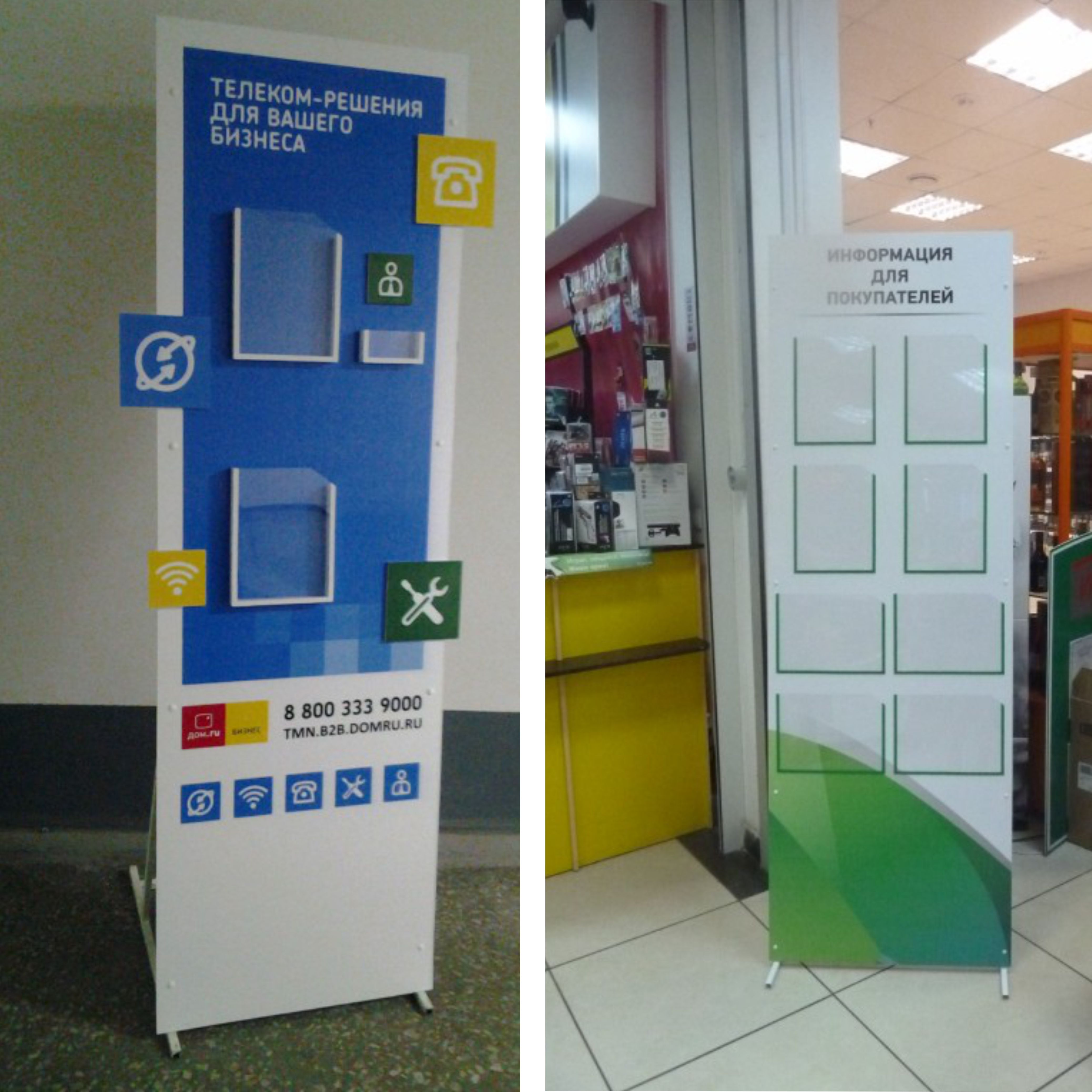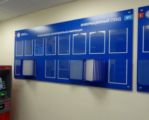 Информационные стенды, размещенные в различных госструктурах, выполняют роль стандартной информационной доски. Рекламные стенды, выполненные в широкоформатном цветном исполнении, на уровне психологии воздействуют на покупателей.