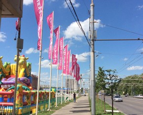 - флаги уличные различных форматов и размеров. Здесь есть и специализированные варианты с вашим логотипом, и