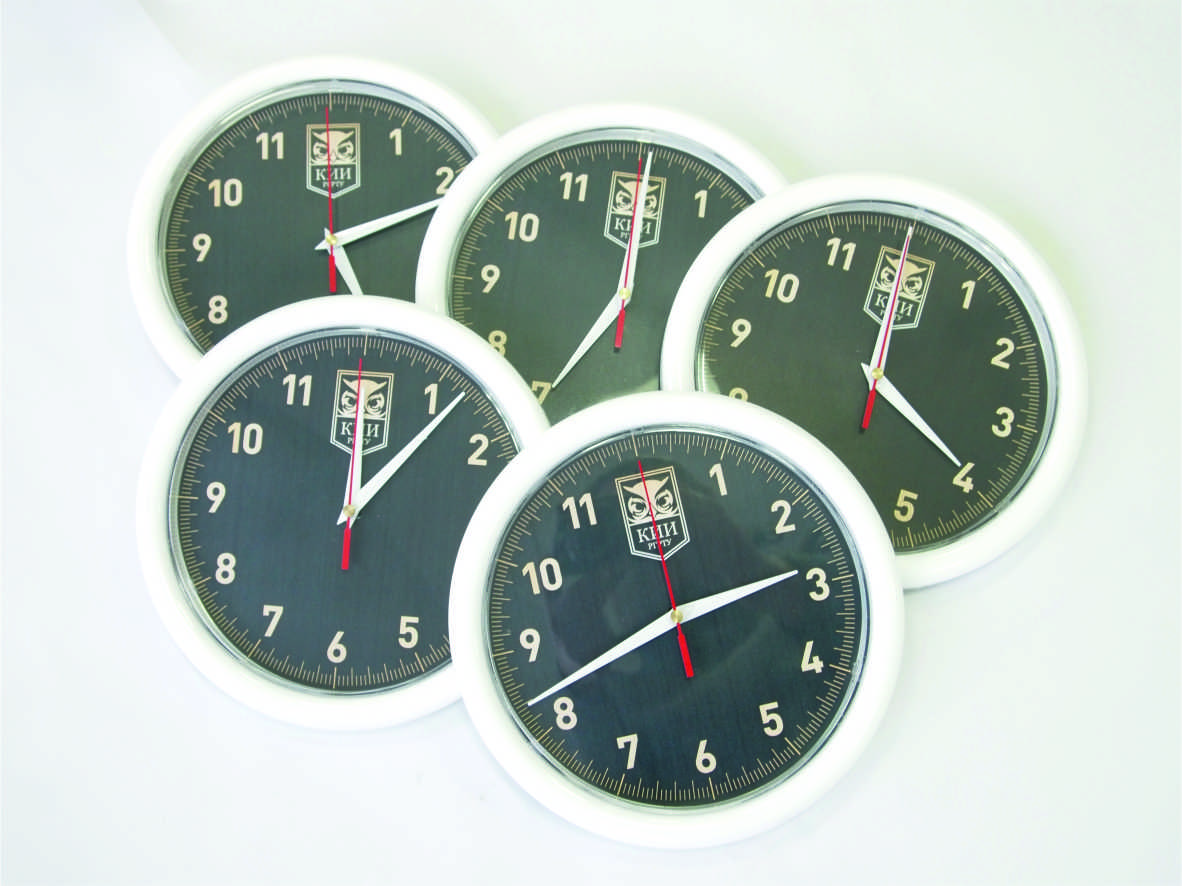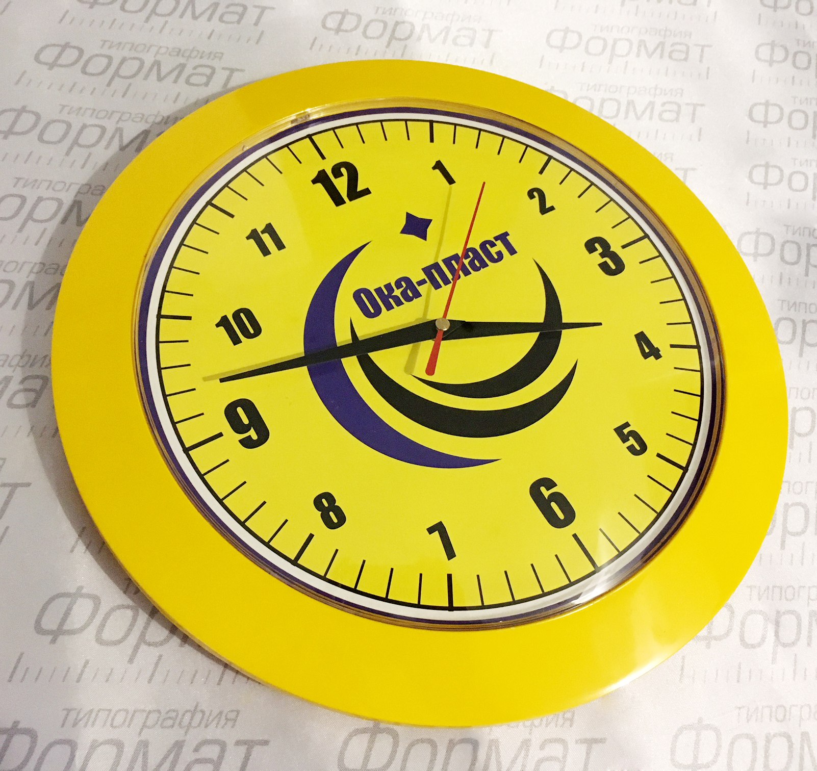 Часы с нанесением фирменного логотипа вашей фирмы – символ внутренней корпоративной культуры и хороший подарок сотрудникам, партнерам по бизнесу и клиентам. Корпоративные часы – это часть имиджа компании, а также хорошее рекламное средство, у которого за день огромная зрительская аудитория, ведь они всегда на виду. Каждый раз, смотря время, клиенты невольно будут думать о вашей компании. У нас вы можете заказать пластиковые часы для нанесения логотипа и другие сувениры (ручки, брелоки и папки).
