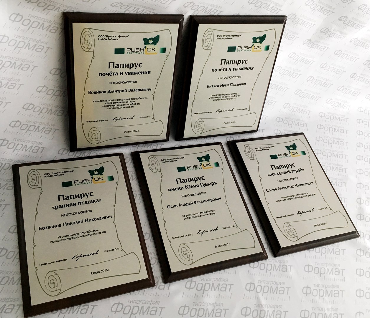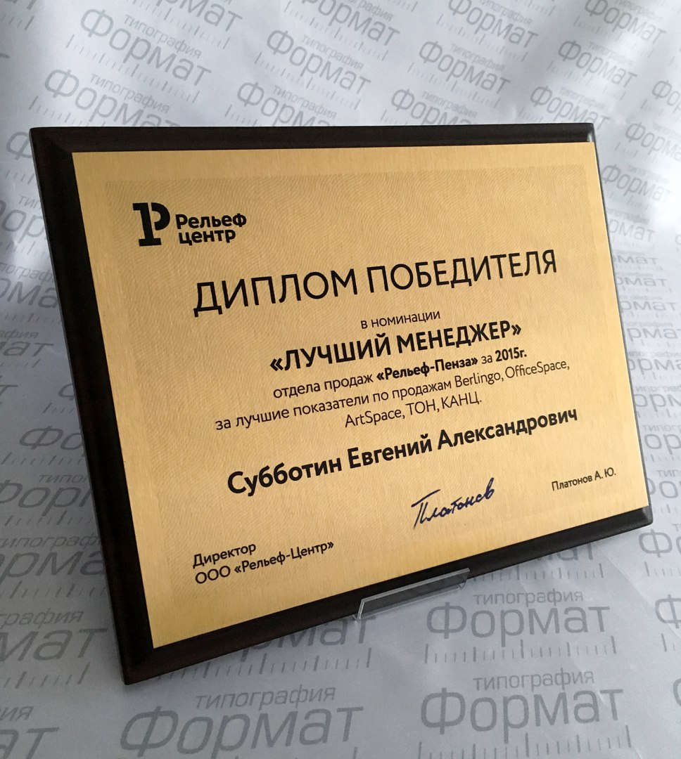 Плакетка – особая наградная доска, благодарность или грамота, широко распространенная в современных компаниях. Внешне плакетка представляет собой деревянную подложку, на которую монтирована металлическая пластина, как правило, на ней нанесен логотип фирмы и какая-либо поздравительная гравировка, в зависимости от случая и торжества. Сама по себе плакетка выглядит гораздо представительнее, чем диплом в рамке, и является отличным корпоративным подарком отличившемуся сотруднику как памятный сувенир.